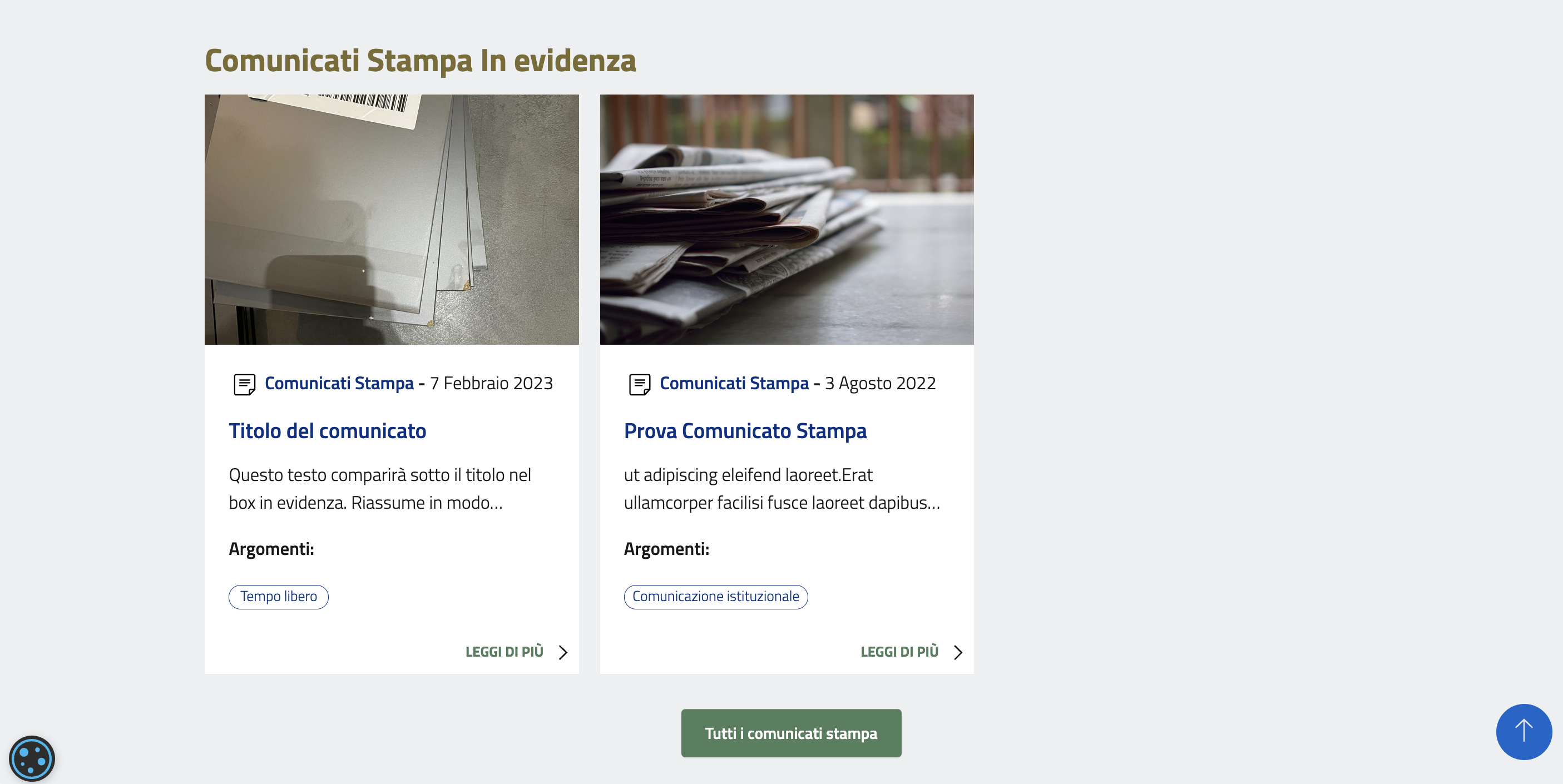 E' comunque sempre possibile accedere a tutto lo storico dei comunicati pubblicati cliccando sul tasto "Tutti i comunicati stampa".